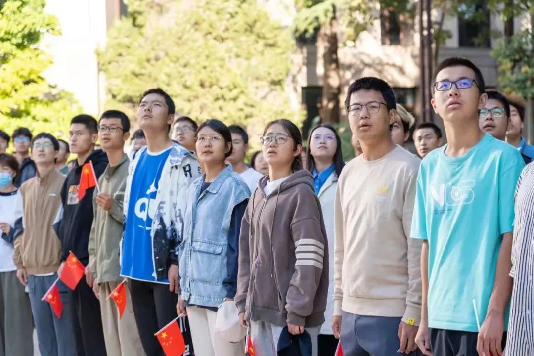 10月1日清晨,学校在两校区举行升旗仪式。国旗护卫队士气昂扬,步履铿锵,护送五星红旗冉冉升起。青年学子身姿挺拔,齐唱国歌,共祝伟大祖国生日快乐。