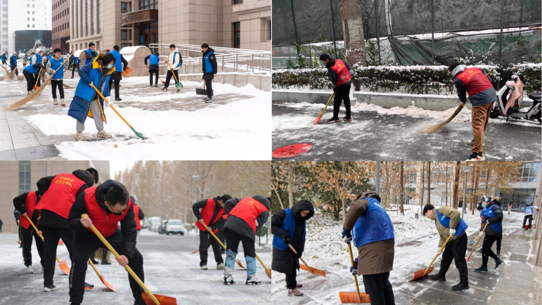 12月13日晚,学生工作部、校团委发布关于号召学生党支部、团支部积极参与扫雪铲冰工作的通知。截止14日17时,共有近800余名学生党员、共青团员及各类学生骨干主动投身铲冰除雪活动。积极响应,以雪为令。闻令而动,迎雪而行。