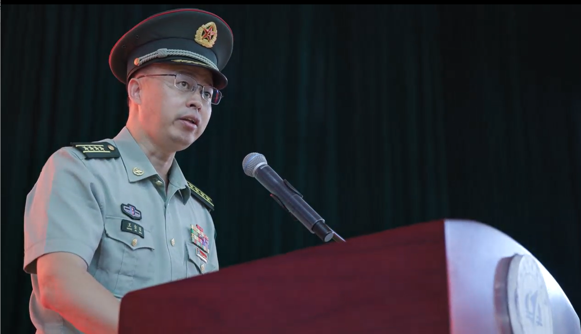 邓怡为军训团授旗并作动员讲话。她回顾了北航作为新中国第一所航空航天高等学府的光辉历程,强调学校从航空救国到航空报国、航天报国,再到服务航空强国、航天强国建设的道路上,始终传承红色基因,把服务国家作为最高追求。邓怡对全体参训学员提出了三点期望:一是要涵养忠诚品格,在信仰历练中彰显家国情怀,用实际行动去传承以“空天报国”为内核的北航精神;二是要培育顽强毅力,在逆境考验中塑造坚韧心性,学会在困境中保持冷静与乐观,为未来的大学生活打下坚实基础;三是要强化集体意识,在团结协作中铸就军人荣耀,学会在协作中寻求共赢,在互助中共同成长,共同打造一支坚不可摧的铁血军团。她希望各位同学经过军训的历练,不仅能够锻炼身体、磨炼意志,更能够深刻领悟到作为新时代北航学子的责任与担当。