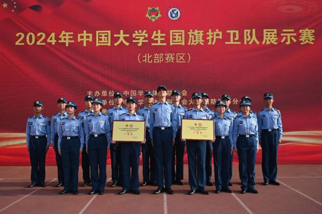 5月23日-5月26日,在2024年中国大学生国旗护卫队展示赛(北部赛区)中,我校国旗护卫队获得升旗展示项和队列动作项目甲组一等奖,备赛期间接待中央财经大学国旗护卫队来校交流。