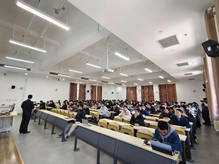 交流会前李李越洋老师通过几个飞行员选拔中的小游戏与同学们互动,并通过海军招飞宣传片让同学们对海军舰载机飞行员的日程训练生活有了直观印象;随后他根据2023年海军面向地方大学生招飞的选拔条件和招飞流程,并结合我校双学籍海军飞行员的培养,介绍了海军飞行员日常训练生活和成长发展情况,鼓励同学们积极参加海军招飞,逐梦蓝天,参军报国。最后他与现场的200多名同学展开了互动交流,他提到“北航同学们空天报国有多种方式,报名飞行员参军入伍是最直接的一种之一”,他鼓励同学们关注海军招飞,为我国海军建设贡献青春力量。