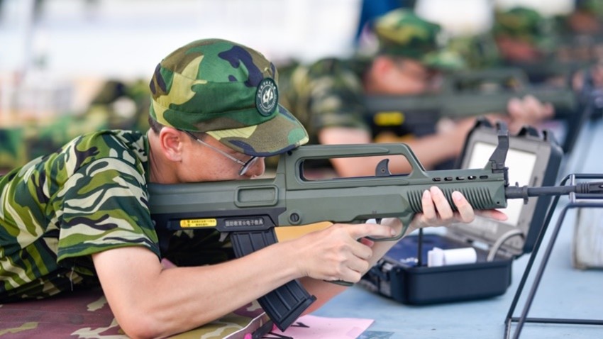 为强化军营生活体验,提高学生军事素养,94日、5日,北航2023级军训团组织各营连分批次开展模拟射击训练