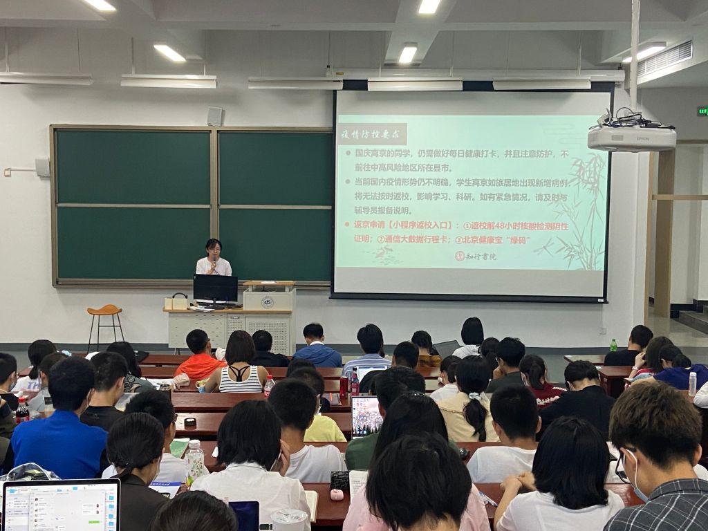 学习交流环节结束后,四位兼职辅导员进行了班会内容的讲解。辅导员们首先强调了国庆离校离京疫情防控的具体要求,确保同学们健康、安全地度过假期生活。接着进行了安全教育活动,提醒大家注意校园中的安全隐患,营造安全、文明的校园环境。最后,辅导员们对近期开展的海淀区人大代表换届选举进行说明,鼓励年满十八岁的同学们充分重视并正确行使自己的选举权,自觉投身学校发展和社会建设,维护人民代表大会制度,实现国家稳定和长治久安。
