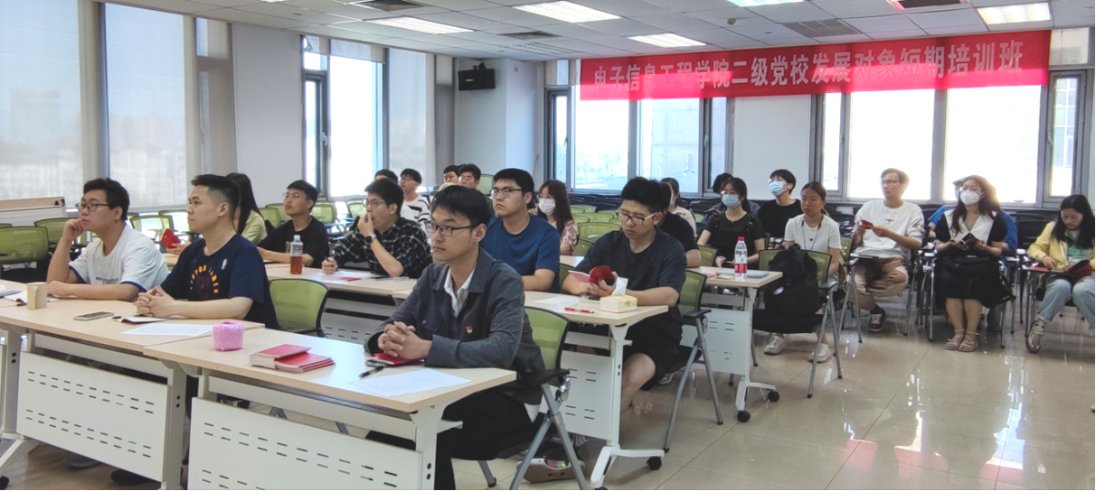 为深入学习贯彻习近平新时代中国特色社会主义思想和党的二十大精神,提高发展党员的质量和素养,电子信息工程学院党委结合新形势下高校思想政治工作,开设第2期发展对象集中培训班,对近期发展对象组织集中培训。本期培训班包括主题教育、理论学习、主题实践、研讨交流等环节,共计24学时。