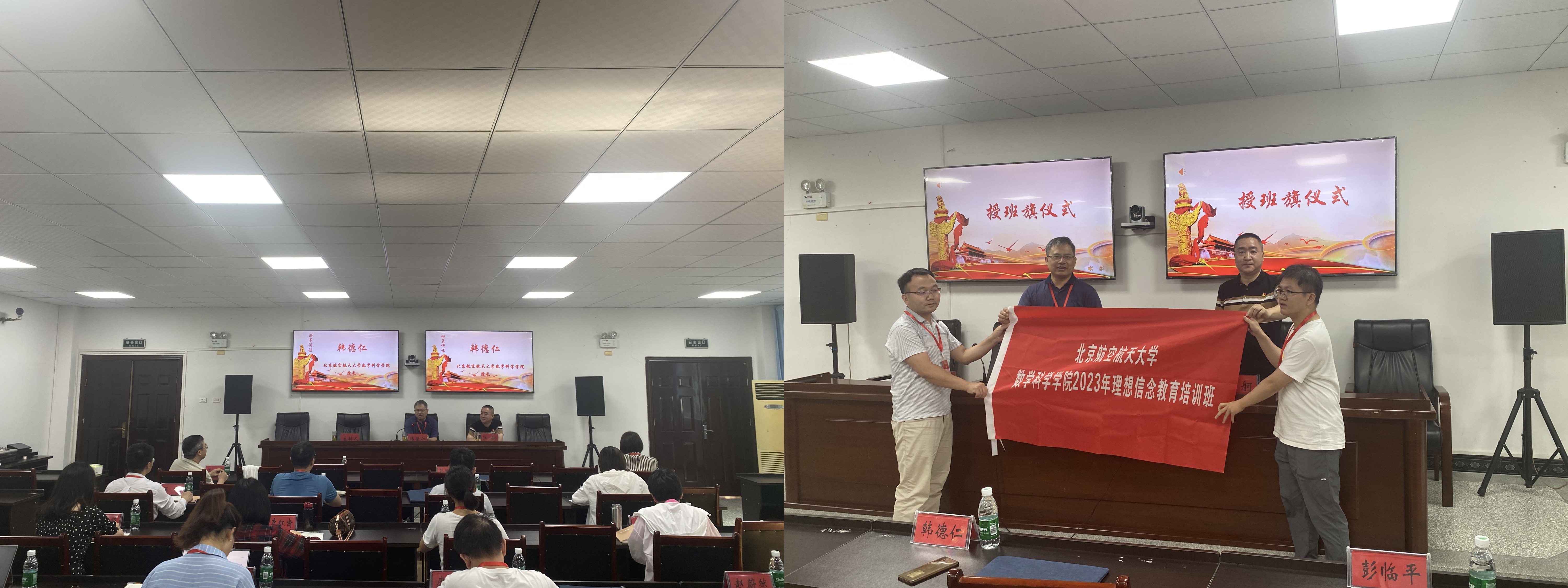 6月26日上午,培训班举行开班仪式。北航数学科学学院院长韩德仁、中共正安县委党校副校长江舸出席了开班仪式。会上,江舸向全体学员致欢迎词并为培训班授予班旗。韩德仁做动员讲话,他表示,此次培训学院进行了充分筹备,希望全体学员在参训期间认真投入学习,近距离体会感悟遵义会议精神,从历史事迹中汲取力量,并将培训所得融入到今后的学习工作和生活中,回校后传递给身边的师生,同时利用培训平台加强教师间和师生间的交流。
