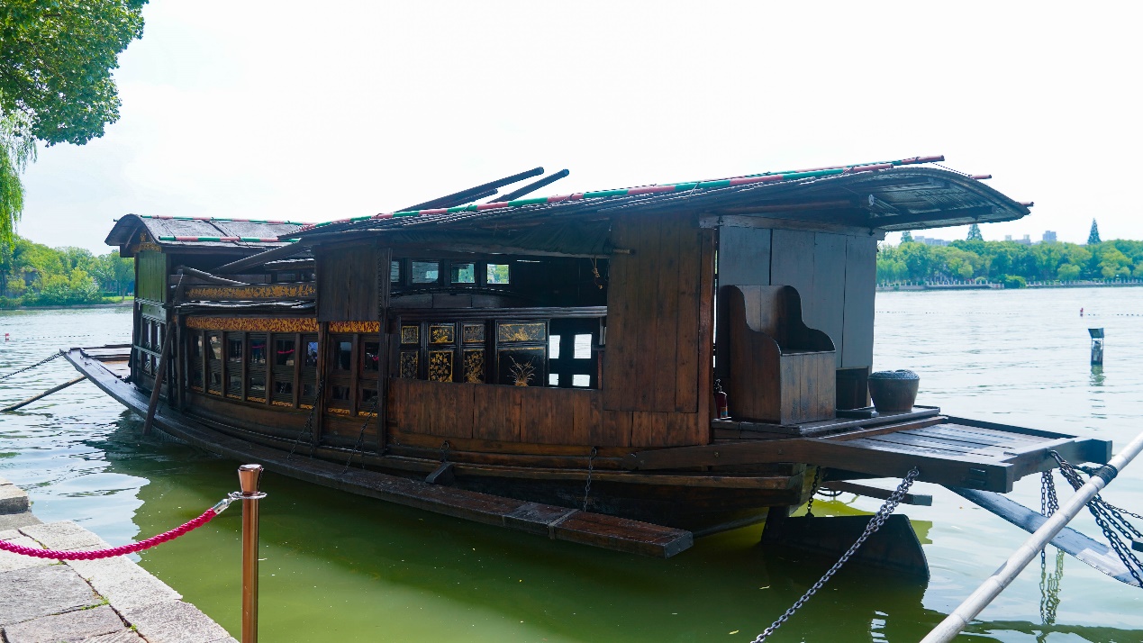 老师和同学们乘船来到湖心岛,肃穆地瞻仰了南湖红船。“革命声传画舫中,诞生共党庆工农。重来正值清明节,烟雨迷蒙访旧踪。”董必武的诗句镌刻成碑,寓意着革命精神薪火相传,红船故事代代传颂。