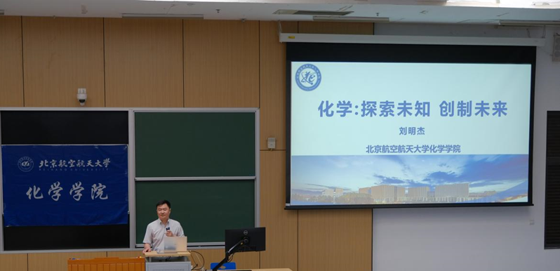 开学仪式后由化学学院院长刘明杰为同学们带来精彩的开学第一课,为新生们讲授化学认知、新时代的化学重要性、学院概况、人才培养模式以及当代大学生应具备的基本素质和重要能力。他欢迎广大学子加入化学学院大家庭,希望同学们可以探索未知,创制未来,并祝愿同学们肩负使命,敢为人先,不忘初心,逐梦而行。