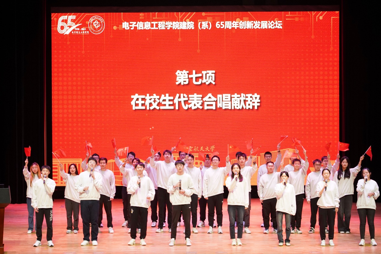 10月28日下午,电子信息工程学院建院(系)65周年创新发展论坛在晨兴音乐厅举行。400余名校友及师生代表参加大会,北航副校长吕卫锋出席会议。大会由学院党委书记徐亚军主持。