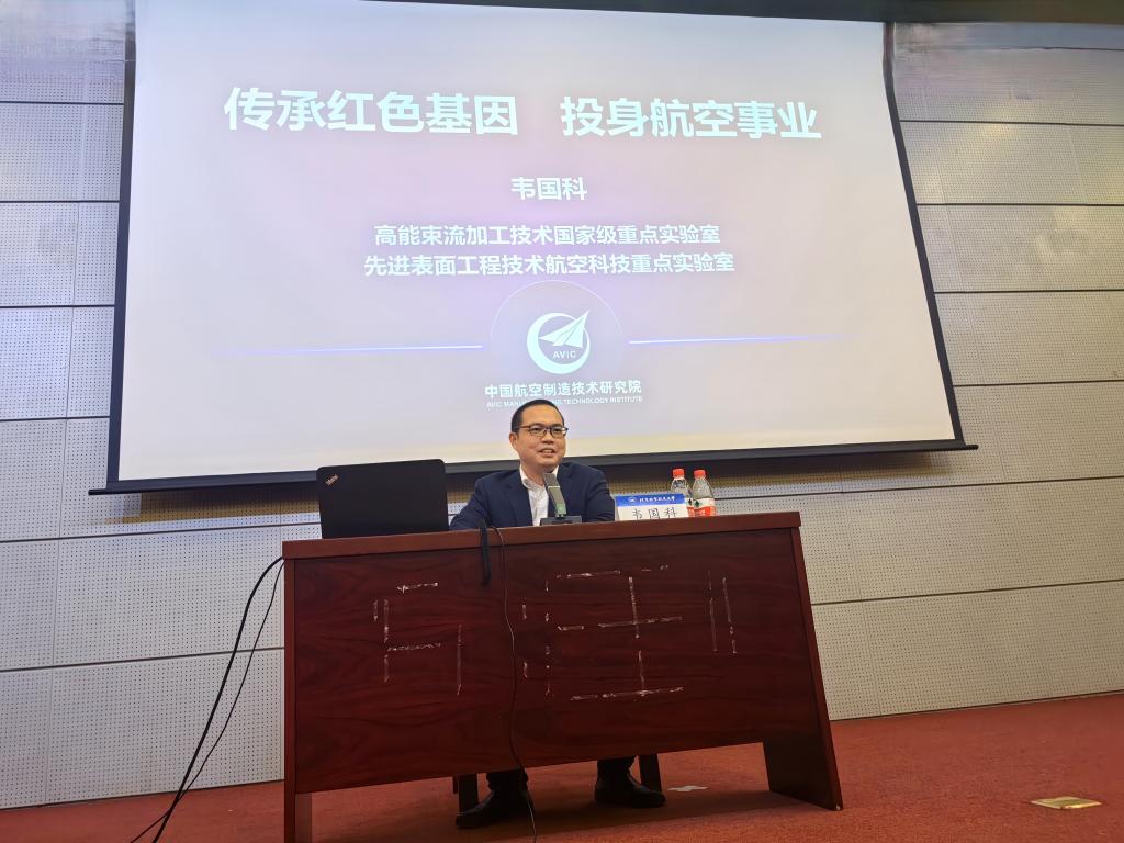 为进一步强化榜样示范引领作用,引导学生矢志空天报国,10月27日下午,士嘉书院在沙河校区实验4号楼205报告厅举办士嘉大讲堂第62讲,中国航空制造技术研究院表面工程技术研究所所长、北航物理学院优秀校友韦国科做了“传承红色基因,投身航空事业”专题报告,士嘉书院400余名学生现场聆听报告。