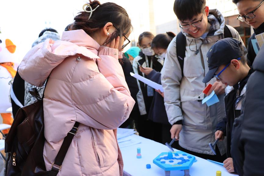 游戏活动区,师生们可以通过游戏收集印章,每三个印章可以兑换一次抽奖机会。航路同行小游戏中的北航71件小事,与北航71周年生日遥相呼应,是新生在北航活动的向导,更是老生们满满的回忆;知识问答小游戏,包罗万象,除了考验学科知识的扎实程度,北航校史、保密知识等也不可或缺;百发百中小游戏,需要在冬日的寒风中精准命中,处处透露着参与者的沉着与冷静;企鹅破冰小游戏,是智慧与运气的结合,敲下的每一块碎片都影响深远。