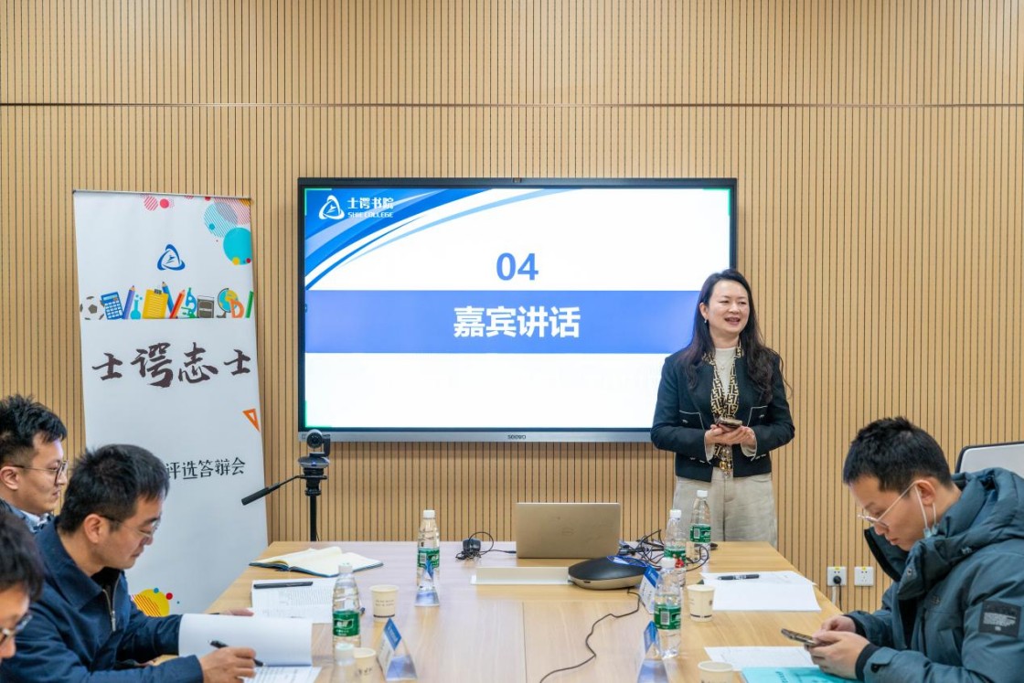 候选人答辩结束后,士谔书院特聘导师、校友嘉宾吴雨女士对本次评审给予了高度评价。她提到,本次“士谔志士”评选中,涌现出了众多优秀士谔学子,为此她感到由衷地激动与欣慰。她强调,士谔学子们必须牢记,当始终坚守“爱国、自信、博采、拓新”的精神,以不懈奋斗的姿态书写“士谔志士”的新篇章。同时,她寄语远在沙河的士谔新生,鼓励他们以优秀同学为榜样,坚定信念,锐意进取,时刻牢记初心使命,勇于肩负时代重任,使士谔精神得以代代相传。