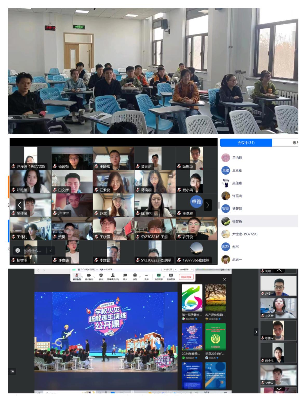为增强学生消防安全意识、学习掌握基本消防常识,进一步保障学生在校安全,经济管理学院于3月15日组织本学院学生全覆盖学习由教育部与国家消防局联合主办的2024春季学校火灾疏散逃生演练公开课,约100名学生集中线下观看,未到场学习的同学以班级/宿舍为单位进行小班/宿舍集中学习观看。
