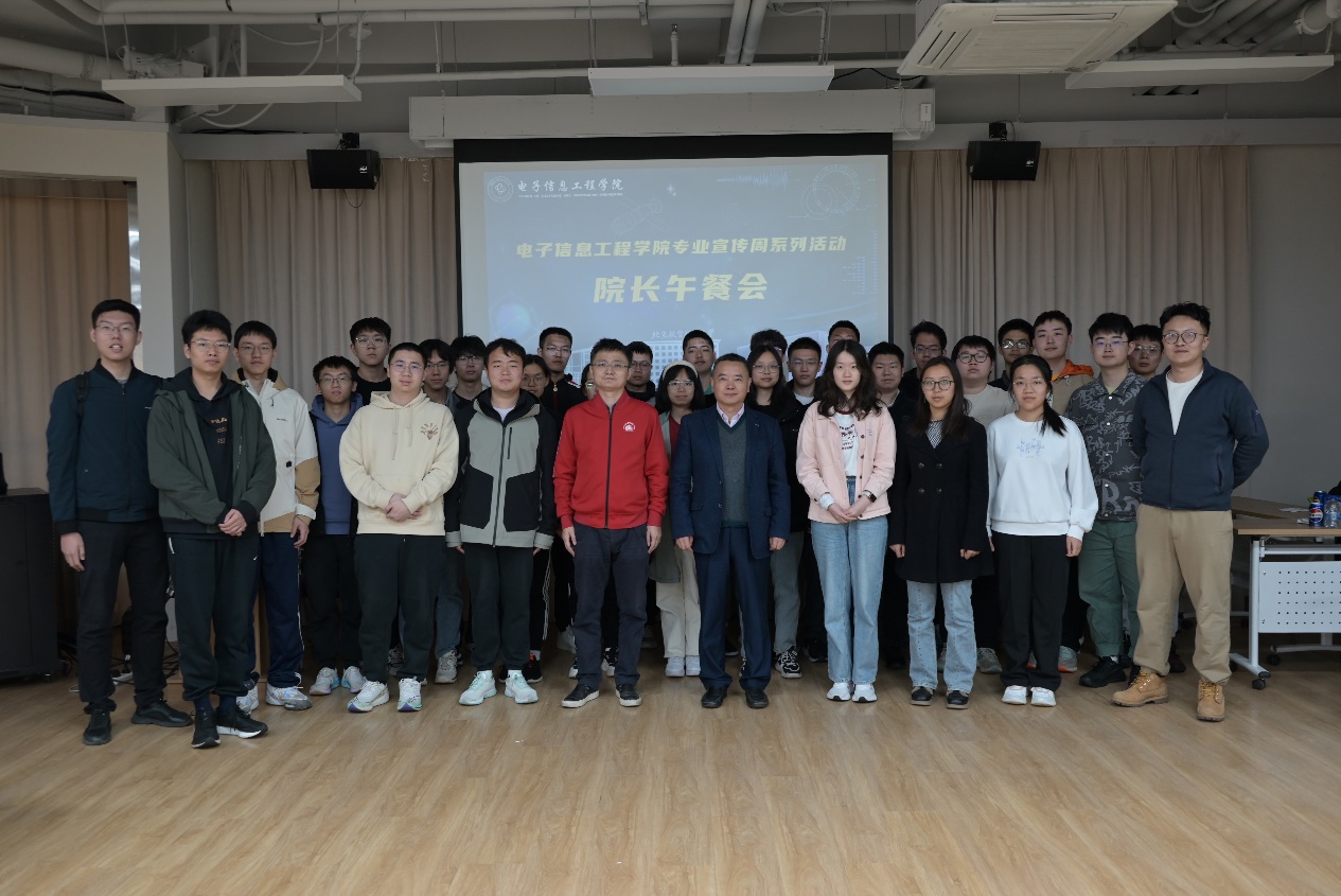 4月10日,电子信息工程学院开展专业宣传院长报告和院长午餐会活动。院长曹先彬,本科教学副院长徐迈,党委副书记姜宇出席,学院专兼职辅导员和600余名信息大类大一学生参加活动。