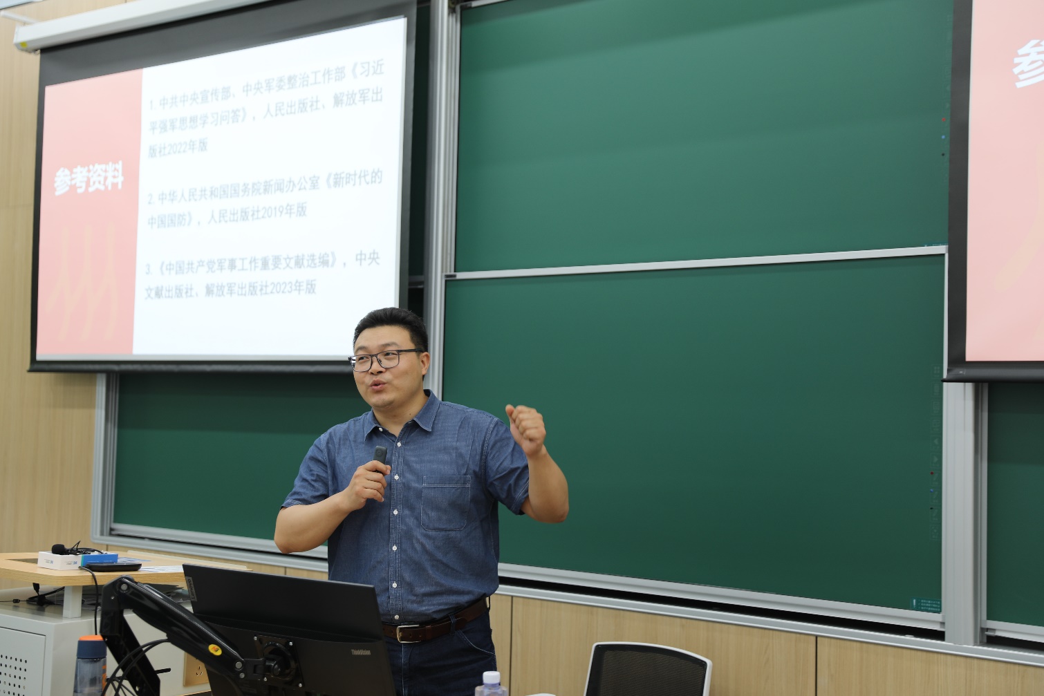 刘进伟从近年来几个军事国防领域的热点案例出发,结合自己曾经的从军经历,从主要内容、重大意义和理论品质等方面,对习近平强军思想进行了全面细致的介绍。课堂内容丰富、案例生动,激发了同学们对强国必须强军、军强才能国安的深入思考,提升了同学们加强理论学习和军事训练的内生动力,坚定了同学们走好中国特色强军之路的信心和决心。