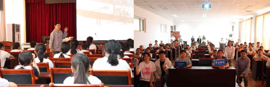 在延庆区张山营学校,学院师生与该校中、小学生开展交流座谈。学生代表向张山营学校的中、小学生开展航空航天知识科普、分享外语学习的心得方法,并向参会学生赠送《航路识英》等书籍,鼓励各位中小学生发奋读书、筑牢报国之志。