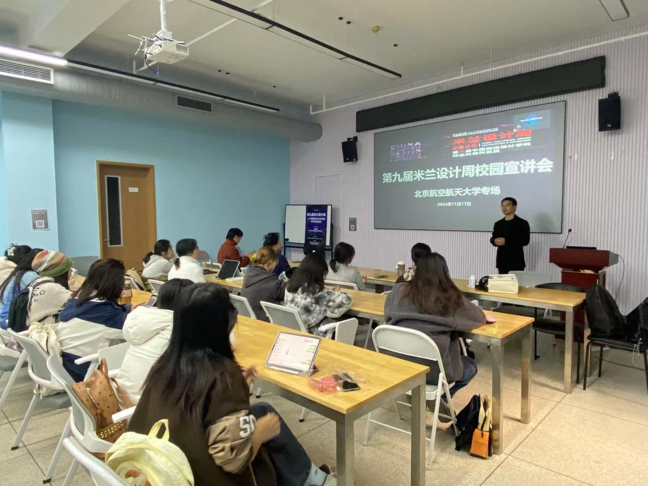 11月17日,第九届米兰设计周中国高校设计学科师生优秀作品展宣讲活动在北航新媒体艺术与设计学院举行,本次活动邀请到大赛运营负责人周光明主讲。