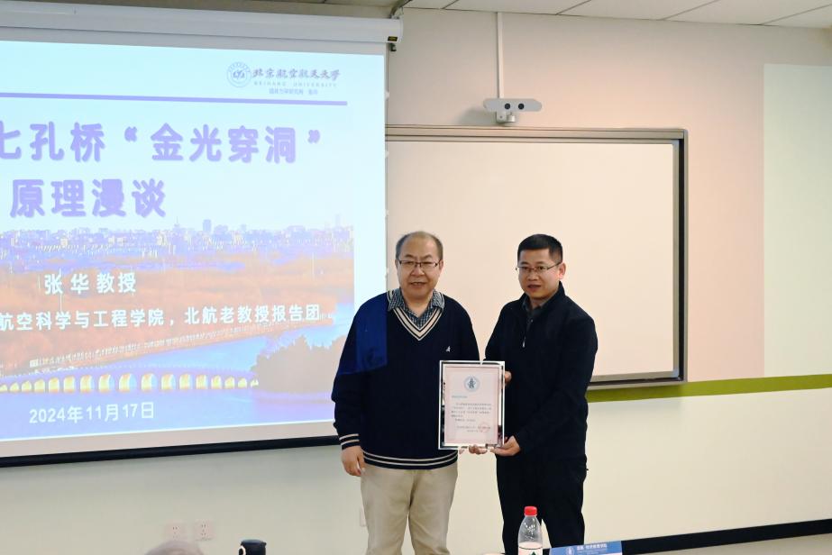 11月17日上午,经济管理学院于A1048组织开展“尚学论坛”讲座,本次讲座由北航关心下一代工作委员会经管学院分会主办,国杰研究院航空航天咨询研究部和北航老教授报告团协办。讲座邀请到流体力学、空气动力学专家,北航老教授报告团成员张华教授作题为《颐和园十七孔桥“金光穿洞”原理漫谈》讲座。
