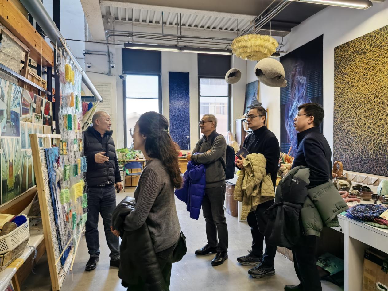 调研期间,双方围绕设计学学科方向设定、本科教学课程板块分布、基础类课程核心课程群建设、博士生培养与学位授予要求、本科生就业指导及毕业去向等多个议题展开了深入交流。清华美院相关负责人详细介绍了其在设计学领域的学科布局、课程体系设计以及学生工作队伍建设的经验,特别是在艺术专业本科生的学涯规划、生涯指导及就业作品集制作等方面的创新做法,为北航新媒体艺术与设计学院提供了宝贵的借鉴。座谈过程中,双方还在智能辅助设计、个性化定制、设计优化与预测、AI推动跨学科交叉融合、自动化与智能化等领域重点讨论了AI赋能设计学的路径探索。座谈结束后,在清华美院负责人的带领下,北航团队参观走访了清华美院各类艺术创作实验室。